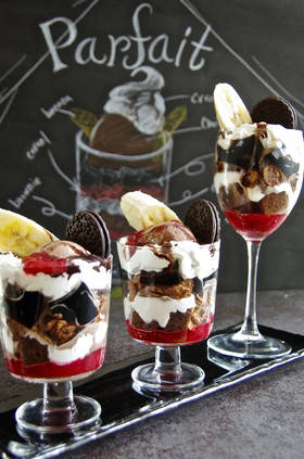 おしゃれなカフェはなかなか子供とは行きにくいですよね。そこで、子供と一緒に楽しめるカフェメニューはいかがでしょうか。材料をグラスに入れていくだけで、簡単におしゃれなチョコレートパフェができますよ♪