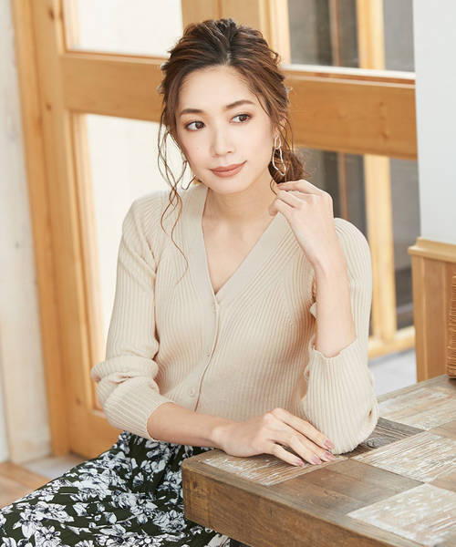 今年は、Vネックのリブニットカーディガンが豊富。昨年はワッフル素材が人気でしたが、それよりも「リブ」の方が万人受けかもしれません。キレイめにもカジュアルにも着回しやすいのがポイント。