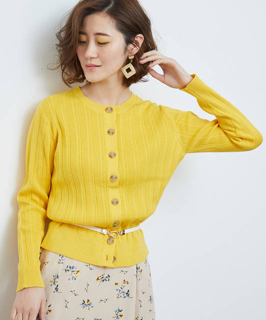 こちらは鮮やかなレモンイエローのロングカーディガン。