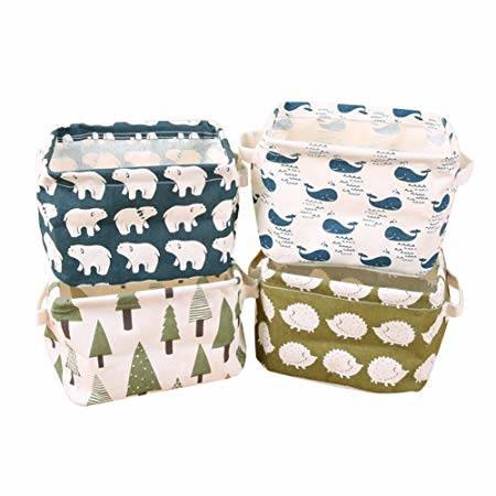 北欧風の柄がかわいいカゴはいかがでしょうか。4つセットなので、子供部屋の収納などにぴったりです!防水加工が施されているので、少しくらい汚れても大丈夫ですよ♪