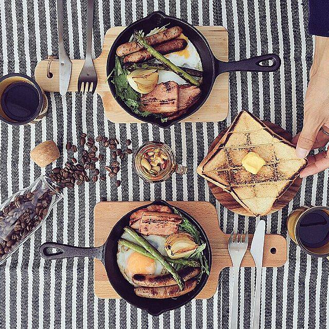 こちらは一見、優雅な朝ごはんに見えますが、実はキャンプ中のテーブルコーディネートだそうです。キャンプ中は使うものが限られているからこそ、カッティングボードを選んだ点が素敵ですよね♡他にも素敵なポイントをあげてみます。