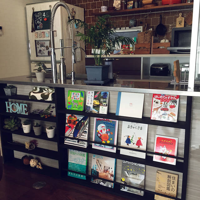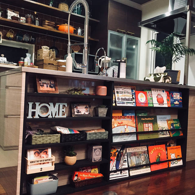 絵本コーナーとして、一番おススメしたいのが、キッチンカウンター下のスペースです。デッドスペースになっていることも多いですよね。そして、キッチンはママが一番長い時間を過ごす場所。キッチンの近くに絵本コーナーがあれば、子どももゆっくり絵本を楽しむことができます。