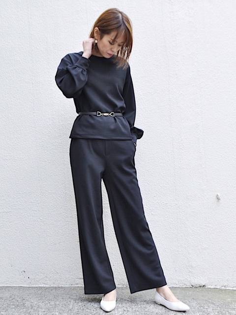 パンツはトレンド感のあるワイドシルエット。センタープレス入りなので、きちんと感があります。