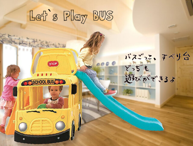 おしゃれなバスと一体型になった珍しいタイプの滑り台。乗り物やおままごと好きな子供にぴったりです。色もシンプルと黄×グリーンでどちらもおしゃれ!リビングやキッズスペースのアクセントになりそうですね。