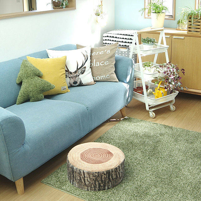 ニトリの切り株柄スツールは、ユーモアたっぷりのかわいいデザインでお部屋のワンポイントに。
