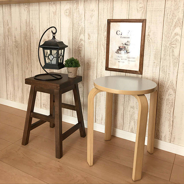 こちらはニトリで人気の「セロ」という木製スツールで、スタッキングできるため使わないときも省スペースで収納できます。