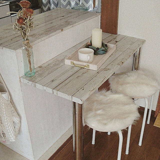 キッチンカウンターにニトリのスツールを組み合わせたコーデ例です。