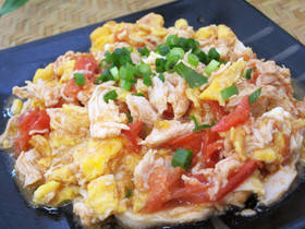 サラダチキンのアレンジレシピ#10.トマトと卵の炒め物