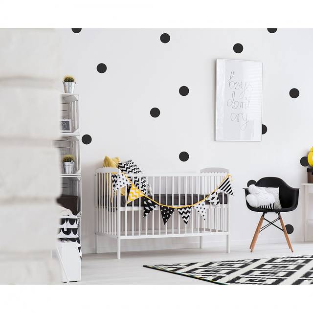 ドット柄がインパクトのある可愛いインテリアですね♪部屋全体が遊び心に溢れているので、ガーランドもしっかりまとまっています。白黒の中にイエローの差し色が効いています。ちょっと色味が寂しいなと思ったら、このように小物の色使いで部屋の印象が明るくなるのでおすすめです♪